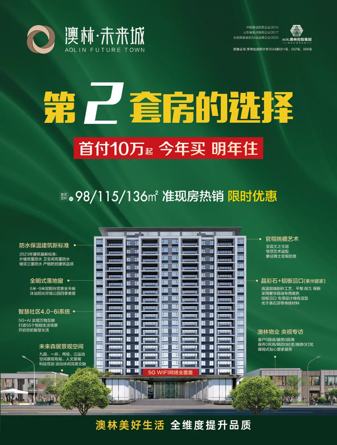 澳林未来城是莱州2023年市级重点工程,由浙江澳林控股集团有限公司开发建设,项目位于主城区南阳河与莱州南路交汇处,矗立在这座城市的南大门。项目于2023年12月正式开工建设,以规划设计、高质选材、全维配套、全系智慧、园林造景及物业服务全面升级建设要求,打造全系智慧社区高品质住宅惠民项目。